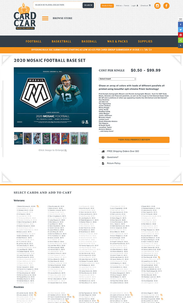 With that being said, Boldwerks was able to not only create a user friendly e-commerce site, but also created a custom shopping experience for all customers. This site was quickly optimized for mobile devices and was able to integrate raffles as a way to connect with audiences. From the naming process to the on-going social media content, Boldwerks was able to build out CardCzar to the huge sports card empire it is today.
