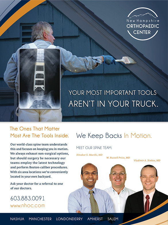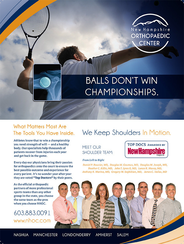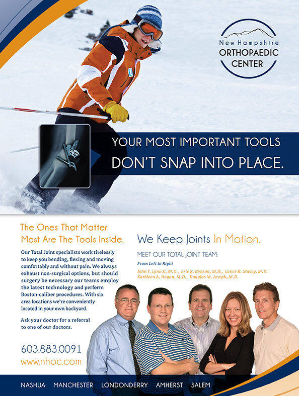 When new Hampshire orthopaedic Center (NHOC) approached us to become their agency of record, we were very excited. We pride ourselves on a being an agency that is steeped in traditional practices and living in the digital age. We love both equally, but when we have the chance to market tangible messaging, yeah, we become very excited.